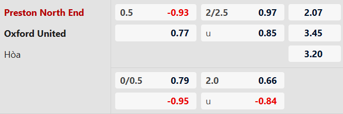 Thông tin tỷ lệ kèo Preston vs Oxford United: