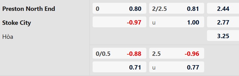 Mốc tài xỉu 2 1/4 cho thấy giới chuyên gia đánh giá đây là trận đấu không quá bùng nổ. Thực tế, các cuộc đối đầu giữa hai đội thường diễn ra chặt chẽ, trong khi Preston đang gặp vấn đề ở khâu ghi bàn. Stoke dù chơi tốt hơn nhưng cũng khó tạo ra thế trận quá cởi mở.