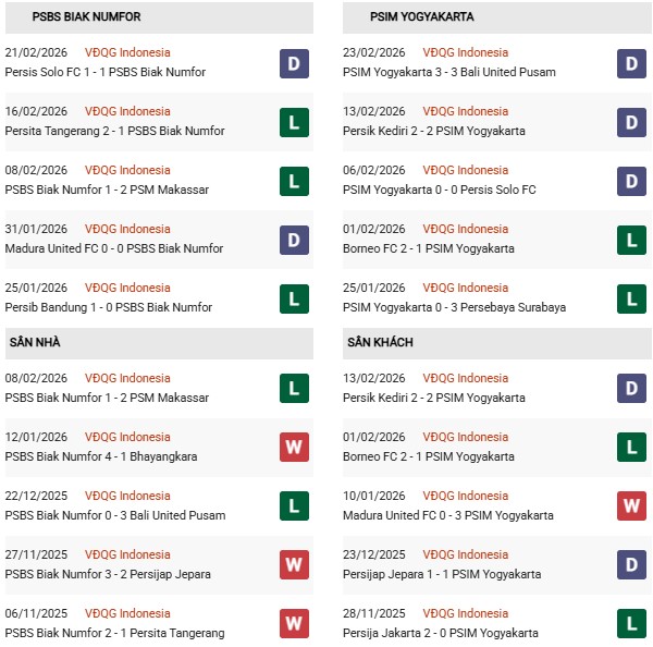 - PSBS BIAK thắng 1, hòa 3, thua 1 trong 5 trận gặp PSIM Yogyakarta gần đây.
