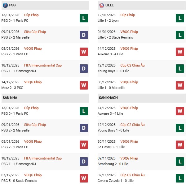 - Trên sân nhà, PSG thắng 9, thua 1 trước Lille.