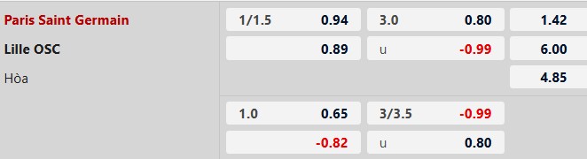 Thông tin tỷ lệ kèo bóng đá PSG vs Lille: