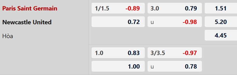 Thông tin kèo bóng đá PSG vs Newcastle: