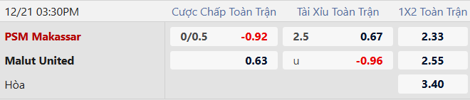 Thông tin tỷ lệ kèo PSM Makassar vs Malut United:
