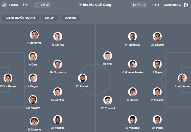 Đội hình dự kiến Puebla vs Queretaro: