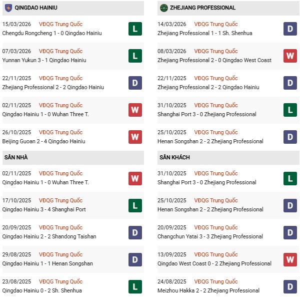 - Trên sân nhà, Qingdao Hainiu thắng 3, thua 3 trước Zhejiang.