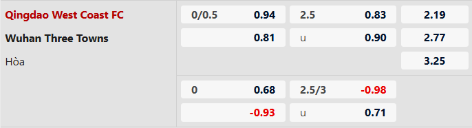 Thông tin tỷ lệ Qingdao West Coast vs Wuhan Three Towns: