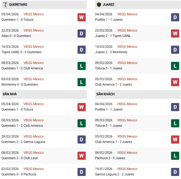 Phong độ tổng thể của Juarez nhỉnh hơn đôi chút với 4 chiến thắng từ đầu mùa, cho thấy khả năng chuyển hóa cơ hội thành điểm số tốt hơn Queretaro. Dù thành tích sân khách chưa quá nổi bật, Juarez lại thường chơi khá thực dụng trước các đối thủ nhóm dưới và biết cách khai thác sai lầm từ hàng thủ đối phương.