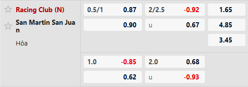 Racing Club bước vào trận đấu này với thành tích toàn thắng kèo châu Á 3 trận liên tiếp gần đây. Thành tích này hoàn toàn trái ngược so với San Martin, đội khiến các nhà đầu tư ôm hận ở 7/9 trận vừa qua và chỉ có 1 trận thắng kèo.