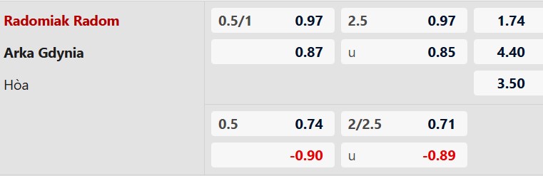 Soi kèo châu Á Radomiak vs Arka Gdynia: