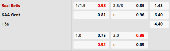 Thông tin tỷ lệ kèo Real Betis vs Gent: