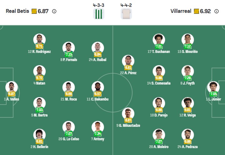 Đội hình dự kiến Real Betis vs Villarreal: