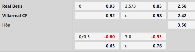 Soi kèo châu Á Real Betis vs Villarreal: