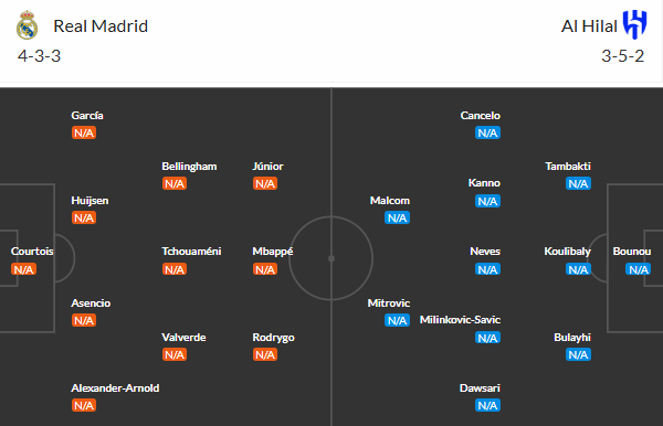 Đội hình dự kiến Real Madrid vs Al Hilal: