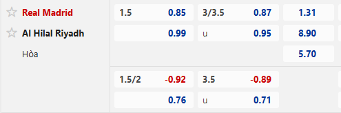 Thông tin tỷ lệ kèo bóng đá Real Madrid vs Al Hilal: