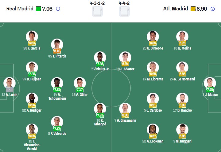 Điểm tựa lớn của Real Madrid chính là sân nhà Bernabeu, nơi họ thường xuyên thể hiện sức mạnh áp đảo. Những chiến thắng đậm như 4-1 trước Elche hay 3-0 trước Man City cho thấy khả năng kiểm soát thế trận và bùng nổ đúng thời điểm. Nếu tiếp tục duy trì phong độ này, Real Madrid hoàn toàn có thể tạo ra khác biệt trong trận derby quan trọng.