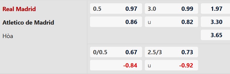 Thông tin tỷ lệ kèo bóng đá Real Madrid vs Atletico Madrid: