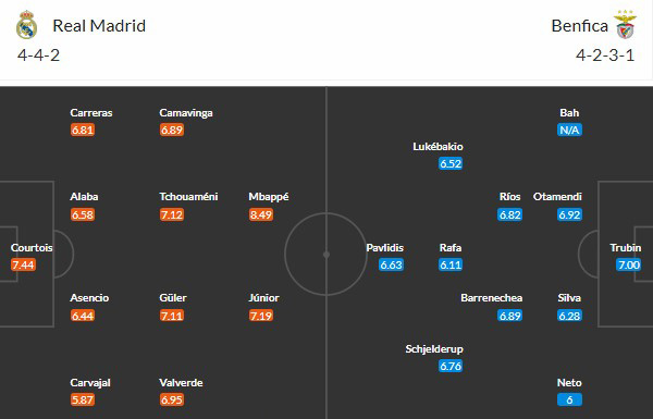 Đội hình dự kiến Real Madrid vs Benfica: