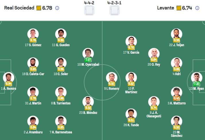Đội hình dự kiến Real Sociedad vs Levante: