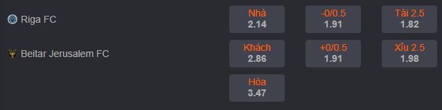 Thông tin tỷ lệ bóng đá Riga FC vs Beitar Jerusalem:
