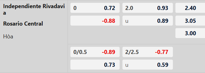 Thông tin tỷ lệ kèo Rivadavia vs Rosario Central: