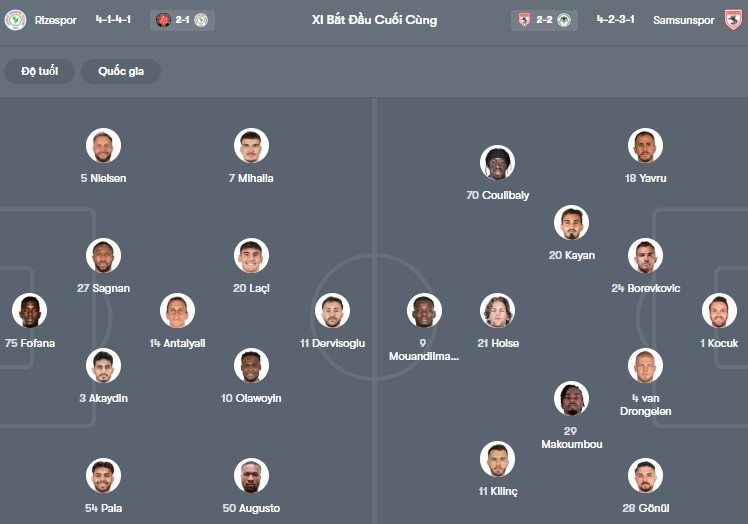 Đội hình dự kiến Rizespor vs Samsunspor: