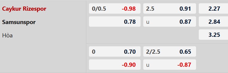 Soi kèo châu Á Rizespor vs Samsunspor: