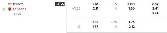 Thông tin tỷ lệ kèo Rodez vs Le Mans: