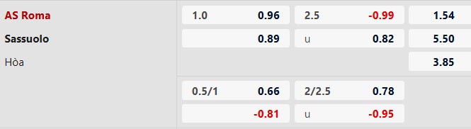 Thông tin tỷ lệ bóng đá Roma vs Sassuolo: