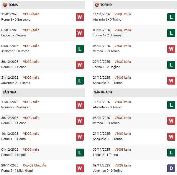 Có thể nói, Roma sở hữu nhiều lợi thế để giành vé đi tiếp tại Coppa Italia 2025/26, khi đón tiếp Torino trên sân nhà Olimpico lần này. Thứ nhất, xét về đối đầu, đội bóng áo bã trầu có thành tích vượt trội. Họ chỉ để thua 1 ở 9 cuộc đụng độ gần nhất, còn thắng 6 và hòa 2 trận.