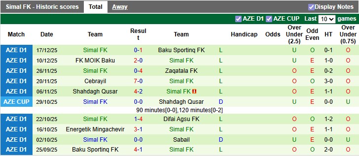 Phong độ gần đây của Simal cực kỳ tệ hại khi hòa 2 và thua 8 trong 10 trận gần nhất. Đáng chú ý hơn, trên sân khách, Simal toàn thua cả 7 trận gần đây, thường xuyên để thủng lưới với cách biệt lớn. Trước sức ép từ một Sabail đang khát điểm cho cuộc đua thăng hạng, khả năng Simal chống đỡ thành công là rất thấp.