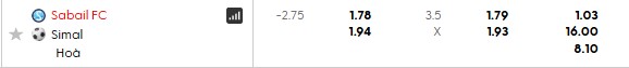 Thông tin tỷ lệ kèo Sabail vs Simal: