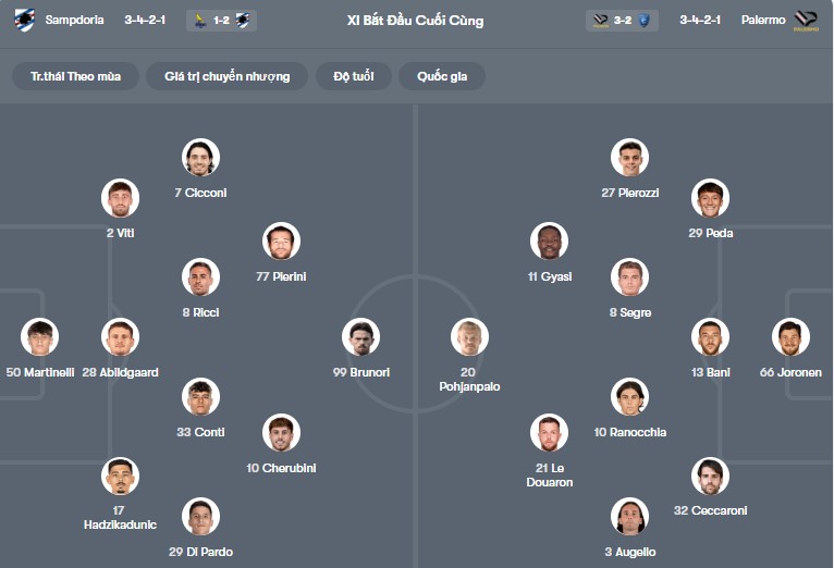 Soi kèo tài xỉu Sampdoria vs Palermo:
