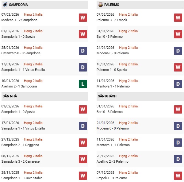 Dự đoán Sampdoria vs Palermo, 01h00 ngày 11/2, vòng 24 Hạng 2 Italia, sân Luigi Ferraris. Trong bối cảnh Palermo đang duy trì chuỗi bất bại dài và rất cần điểm để bám đuổi cuộc đua thăng hạng, lựa chọn đội khách vẫn được đánh giá an toàn hơn.