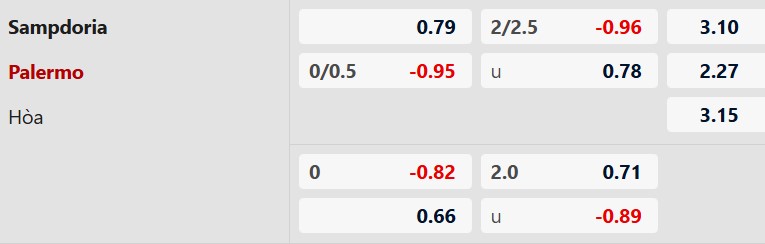 Thông tin tỷ lệ kèo Sampdoria vs Palermo: