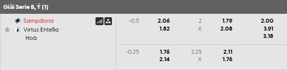 Soi kèo châu Á Sampdoria vs Virtus Entella: