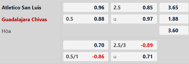 Thông tin tỷ lệ kèo San Luis vs Guadalajara Chivas:
