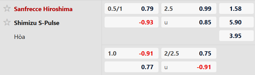 Thông tin tỷ lệ kèo Sanfrecce Hiroshima vs Shimizu S-Pulse: