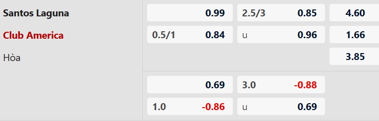 Thông tin tỷ lệ Santos Laguna vs Club America: