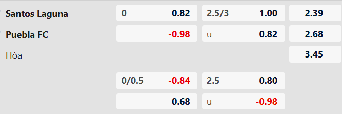 Soi kèo châu Á Santos Laguna vs Puebla: