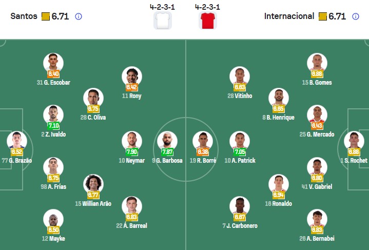 - Trên sân nhà, Santos thắng 3, thua 3 trước Internacional.