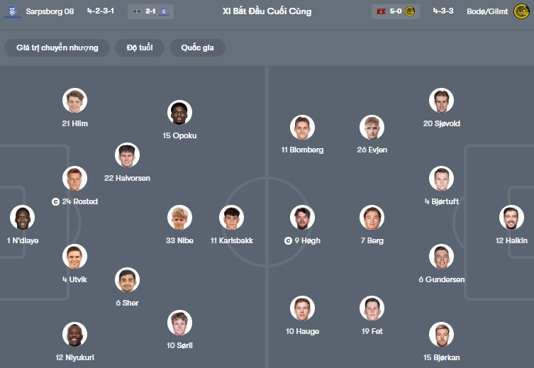 Đội hình dự kiến Sarpsborg vs Bodo Glimt: