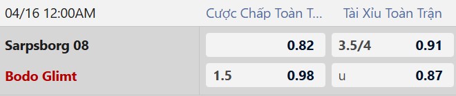 Mốc tài xỉu 3 3/4 là khá cao, phản ánh xu hướng cởi mở của cặp đấu này. Bodo Glimt thường chơi tấn công mạnh mẽ, trong khi Sarpsborg cũng không quá chắc chắn ở hàng thủ. Trận đấu nhiều khả năng sẽ có nhiều bàn thắng.