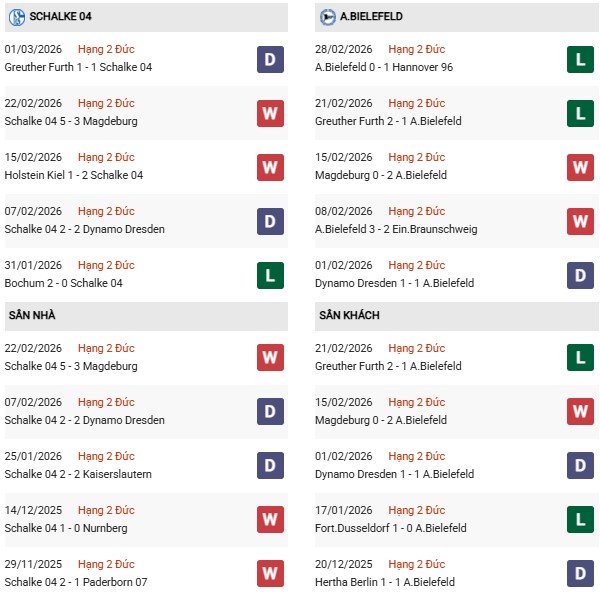 Vì thế, nhiều khả năng Schalke sẽ giành trọn vẹn 3 điểm trước một Bielefeld đã thua họ 4/6 trận gần nhất tại Veltins-Arena, để củng cố ngôi đầu BXH Bundesliga 2 mùa 2025/26.
