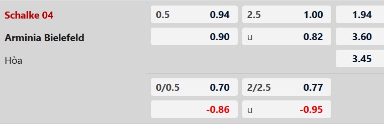 Thông tin tỷ lệ cược Schalke vs Arminia Bielefeld:
