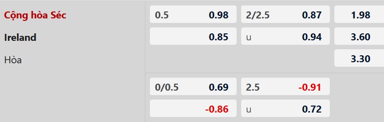 Thông tin tỷ lệ kèo Séc vs Ireland: