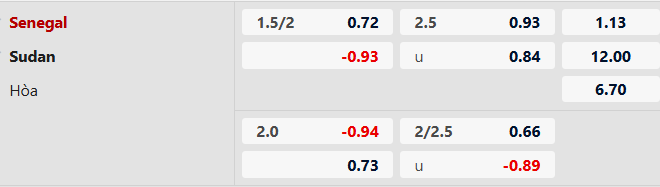 Thông tin tỷ lệ kèo Senegal vs Sudan: