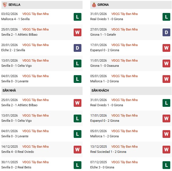 - Trên sân nhà, Sevilla thắng 2, thua 3 trước Girona.