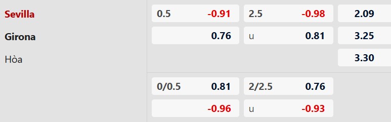 Girona thắng theo châu Á hiệp 1: Các cầu thủ Girona thắng theo châu Á 3, hòa 1 và chỉ thua 1 trong 5 trận gần đây trước giờ nghỉ. Lịch sử cũng chứng kiến Girona thắng theo châu Á 5/6 trận đối đầu gần nhất trong 45 phút đầu. Với Sevilla, đội chủ nhà thua châu Á 3 và hòa 3 ở 6 trận vừa qua trong hiệp một.