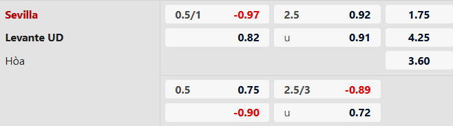 Thông tin tỷ lệ kèo Sevilla vs Levante:
