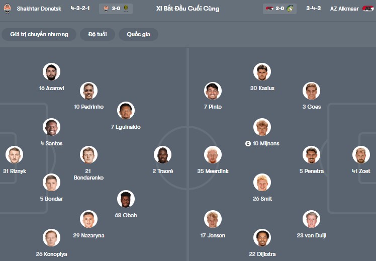 Thông tin lực lượng Shakhtar Donetsk vs AZ Alkmaar:
